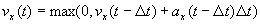 for updating the x component of the velocity (but don't let it go negative, checking yet again, and, yes, this is a hack); depends on columns 10 (prior row) and 6.