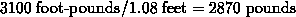 of torque. The differential is a further lever-multiplier, in the case of the Corvette by a factor of 3.07, yielding 3100 foot pounds at the center of the rear wheels (this is a lot of torque!). The distance from the center of the wheel to the ground is about 13 inches, or 1.08 feet, so the maximum force that the engine can put to the ground in a rearward direction (causing the ground to push back forward-remember part 1 of this series!) in first gear is