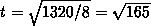 and we plug in the numbers: the quarter mile equals 1320 feet,
