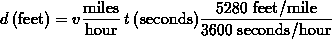 If you ``cancel out'' the units parts of this equation, you will see that you get feet on both the left and right hand sides, as is appropriate, since equality is required of any equation. The conversion factor is 5280/3600, which happens to equal 22/15.