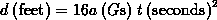 happens to be 32.1 feet per second squared. Fortunately, we don't have to deal with miles and hours here, so our equation becomes,