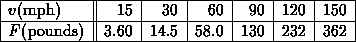 in miles per hour, but we need in feet per seconds for the calculations to come out right. We recall that there are 22 feet per second for every 15 miles per hour, giving us