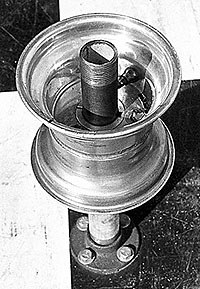 The second step is to mount the rim firmly so that you can work the tire while the rim remains stationary. The following procedure will work for Douglas, or other one piece wheels. Using a 1 or 1 1/4 steel tube at least 14 long with a flange on one end works real well. Mount the flange on the